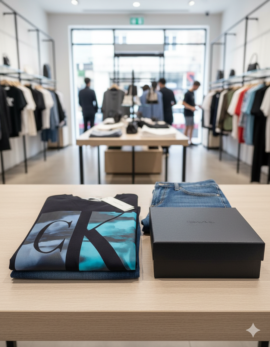 Distinctive Graphic: The chest features a large, striking CK logo graphic with a dynamic blue and dark wash effect, making it a unique focal point.